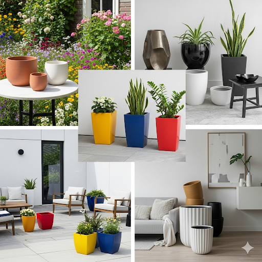- Modern Villa Bahçeleri: Minimalist mimariye uyum sağlayan düz hatlı, mat veya parlak yüzeyli fiber saksı setleri.